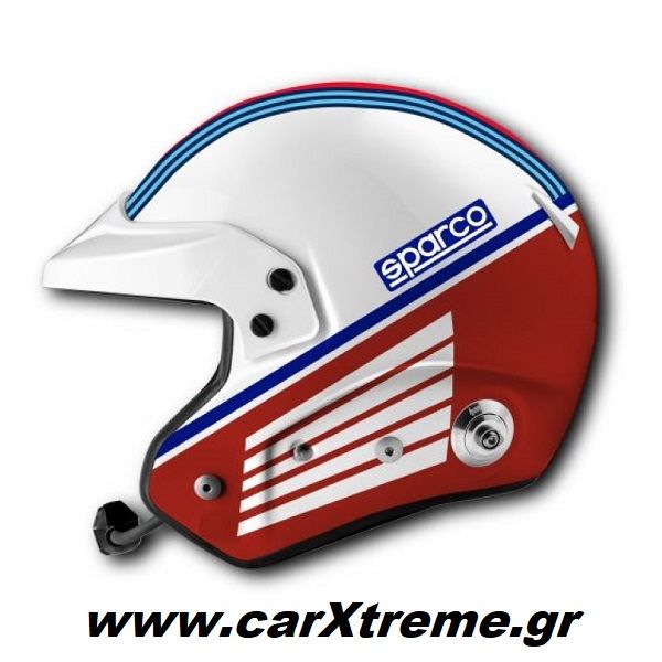 Αγωνιστικό κράνος Sparco ειδικά σχεδιασμένο με τις εμβληματικές ρίγες Martini.
