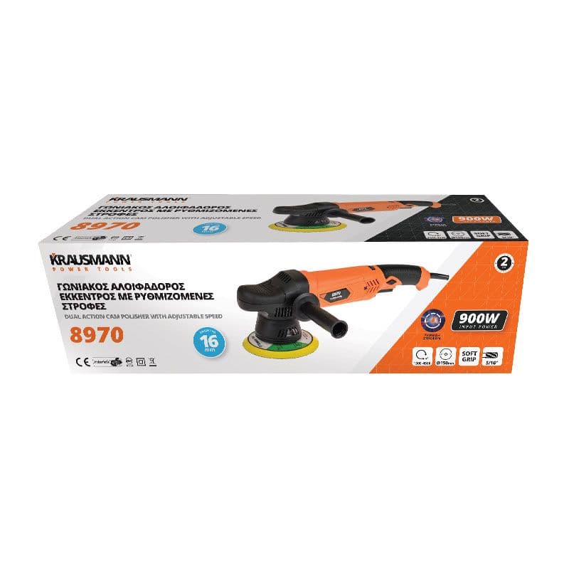 Αλοιφαδόρος Συσκευή Γυαλίσματος Γωνιακός Έκκεντρος 230V 900W Ø 150mm Krausmann 8970 Με Ρυθμιζόμενες Στροφές