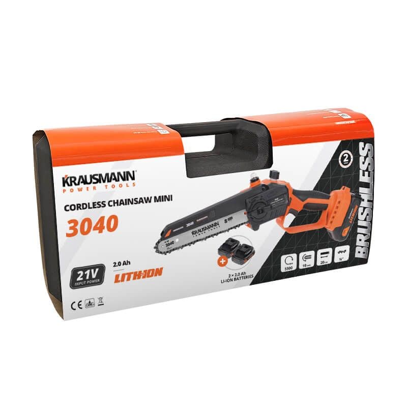 Αλυσοπρίονο Mini Μπαταρίας 21Volt Με Λάμα 20cm Brushless Επαναφορτιζόμενο Krausmann 3040