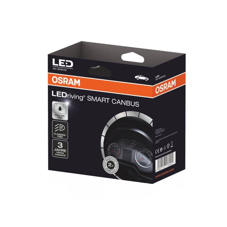 Το LEDriving SMART CANBUS χρησιμεύει ως παράκαμψη του συστήματος ανίχνευσης βλάβης της λάμπας ενός οχήματος όταν χρησιμοποιείται μια λυχνία after market H7-LED. Η μονάδα ελέγχου προσφέρει εύκολη εγκατάσταση και είναι κατάλληλη για τα περισσότερα μοντέλα οχημάτων με σύστημα αυτόματης ανίχνευσης βλάβης λαμπτήρα canbus. Ένα επιπλέον χαρακτηριστικό είναι ότι καταργείται το τρεμόπαιγμα στα φανάρια του οχήματος. Η OSRAM παρέχει 3 χρόνια εγγύηση για αυτό το προϊόν.