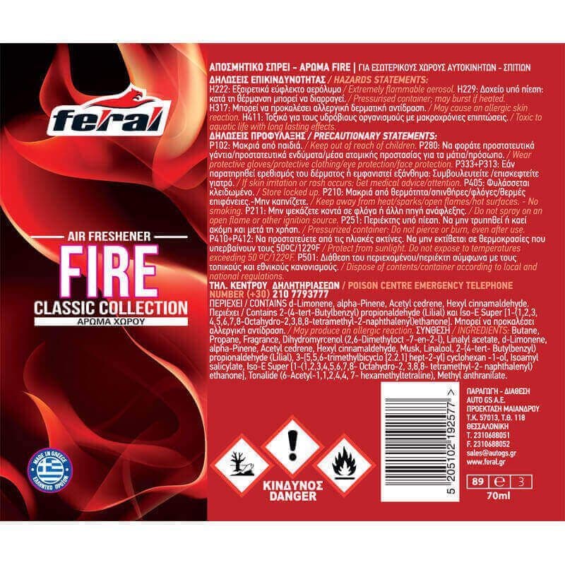 Αρωματικό Αυτοκινήτου Spray Feral Classic Collection Fire 70ml