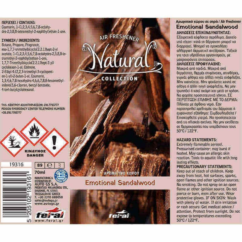 Αρωματικό Αυτοκινήτου Spray Feral Natural Collection Σανταλόξυλο 70ml