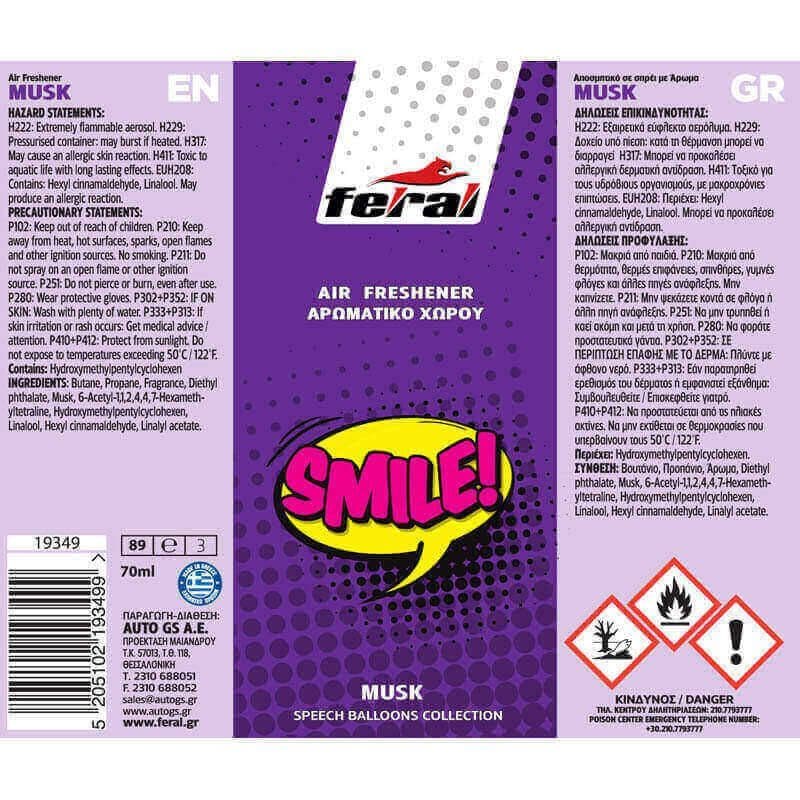 Αρωματικό Αυτοκινήτου Spray Feral Speech Collection SMILE 70ml