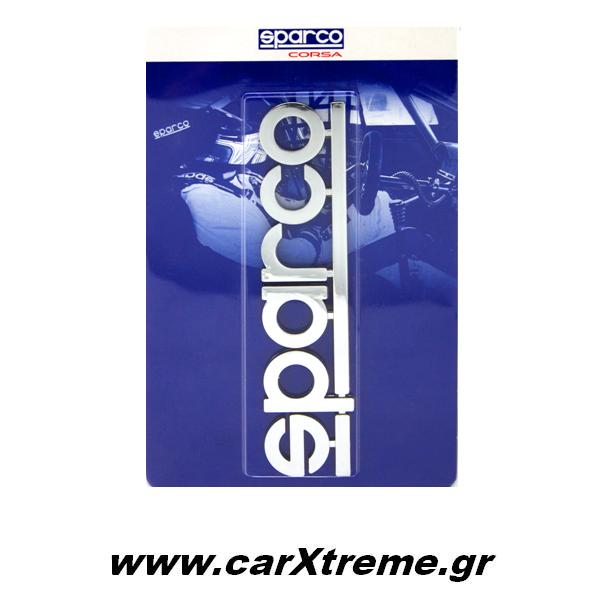 Το ανάγλυφο αυτοκόλλητο της εταιρείας Sparco διατείθεται σε ασημί χρώμα