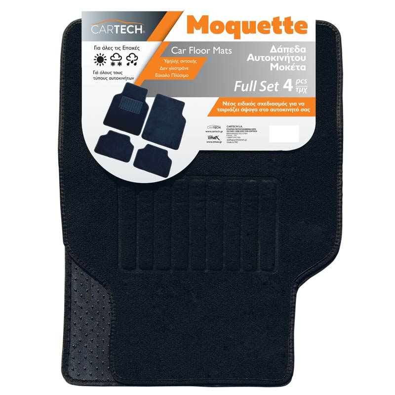 Δάπεδα MOQUETTE Σετ 4τεμ Μαύρο από την Cartech για Όλα τα Αυτοκίνητα