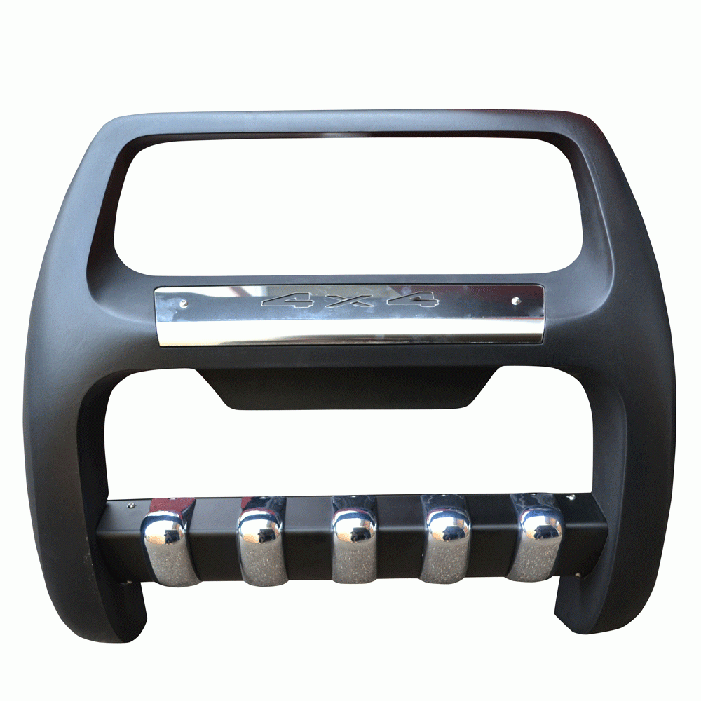 Εμπρόσθιος προφυλακτήρας (BULL-BAR) νέας γενιάς πολυουρεθάνης, ψηλού προφίλ όπου απορροφά μέρος της δύναμης σε περίπτωση σύγκρουσης, έχει ανοξείδωτο ταμπελάκι όπου αναγράφεται η μάρκα του αυτοκινήτου καθώς και αλουμινένια ποδια με νίκελ δοντάκια για την μέγιστη προστασία του κάτω μέρους του αυτοκινήτου .