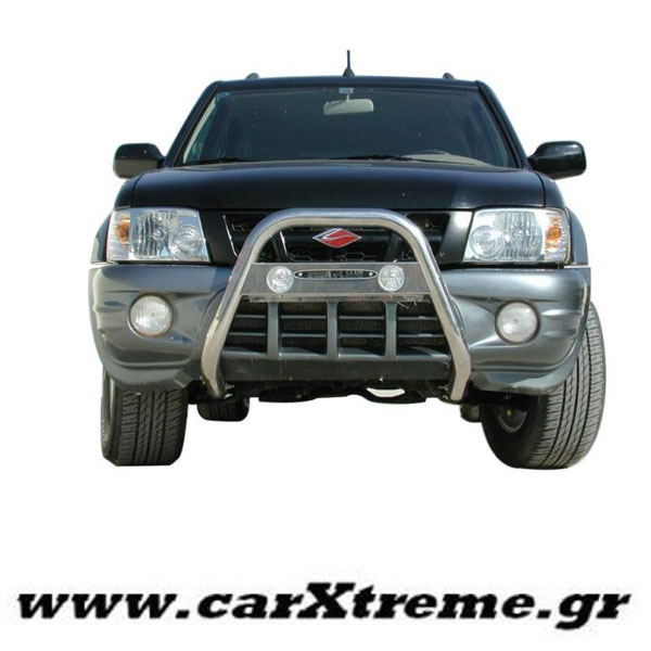 Εμπρόσθιος προφυλακτήρας ανοξείδωτος με ανοξείδωτη λάμα με ενσωματωμένους προβολείς ομίχλης και ανοξείδωτο ταμπελάκι όπου αναγράφεται το μοντέλο ή η μάρκα του αυτοκινήτου (τοποθέτηση χωρίς τρυπήματα & συγκολλήσεις).