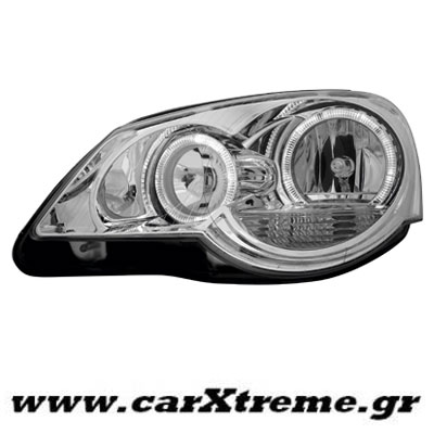 Φανάρι εμπρός chrome 2 Halo Rims για αυτοκίνητο VW Polo 9N2, μοντέλο έτους 2005 έως 2009.