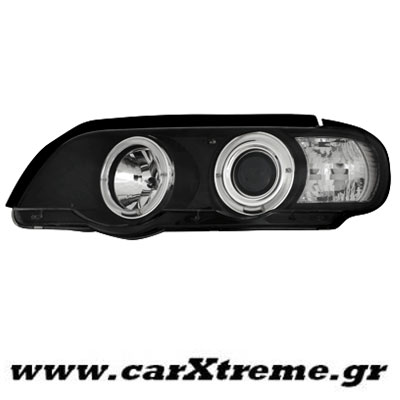 Φανάρι εμπρός μαύρο 2 Halo Rims για αυτοκίνητο BMW X5, για μοντέλο έτους 1999 έως 2002.