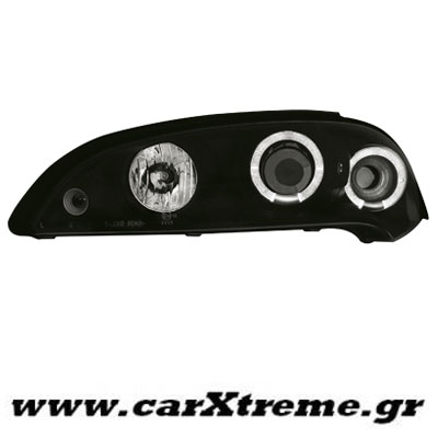 Φανάρι εμπρός μαύρο 2 Halo Rims για αυτοκίνητο Opel Tigra, για μοντέλο έτους 1994 έως 2000.