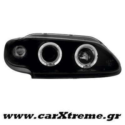 Φανάρι εμπρός μαύρο 2 Halo Rims για αυτοκίνητο Renault Megane 3 5D, για μοντέλο έτους 1996 έως 1999.