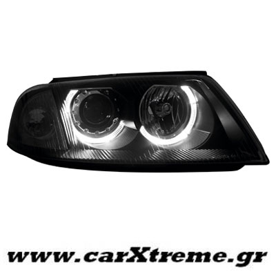 Φανάρι εμπρός μαύρο 2 Halo Rims VW Passat 3BG, μοντέλο έτους 2000 έως 2004.