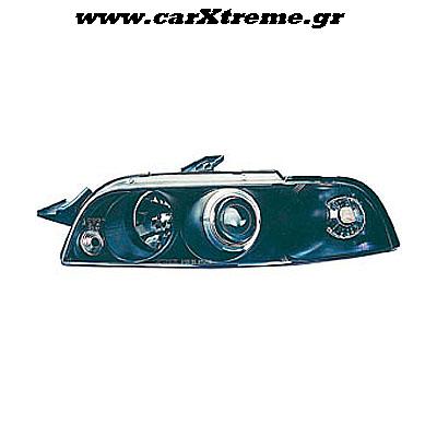 Φανάρι εμπρός μαύρο 1 Halo Rims για αυτοκίνητο Fiat Punto, για μοντέλο έτους 1993 έως 1996.