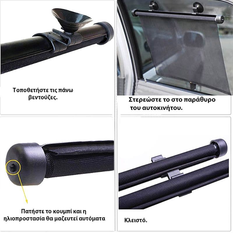 Προστατευτείτε από τον ήλιο τώρα! Η τοποθέτηση γίνεται εύκολα και γρήγορα στο εσωτερικό του αυτοκινήτου.