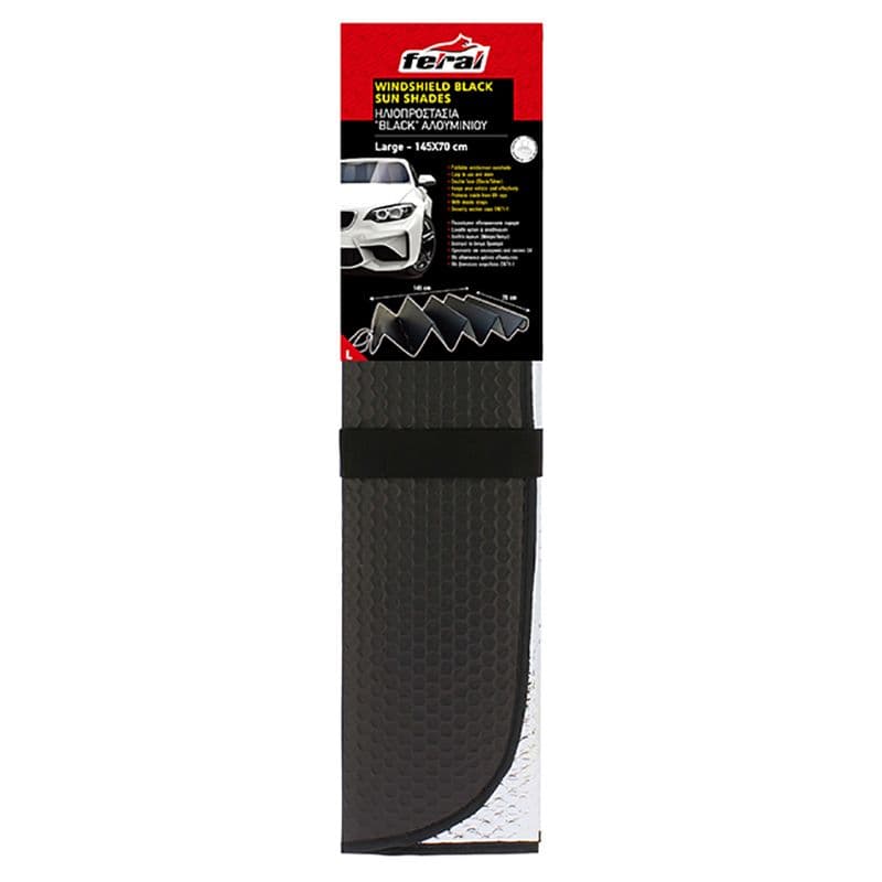 Ηλιοπροστασία Παρμπρίζ Αλουμινίου ''Black'' Feral Μαύρο Matte Large 145x70cm 1 Τεμάχιο