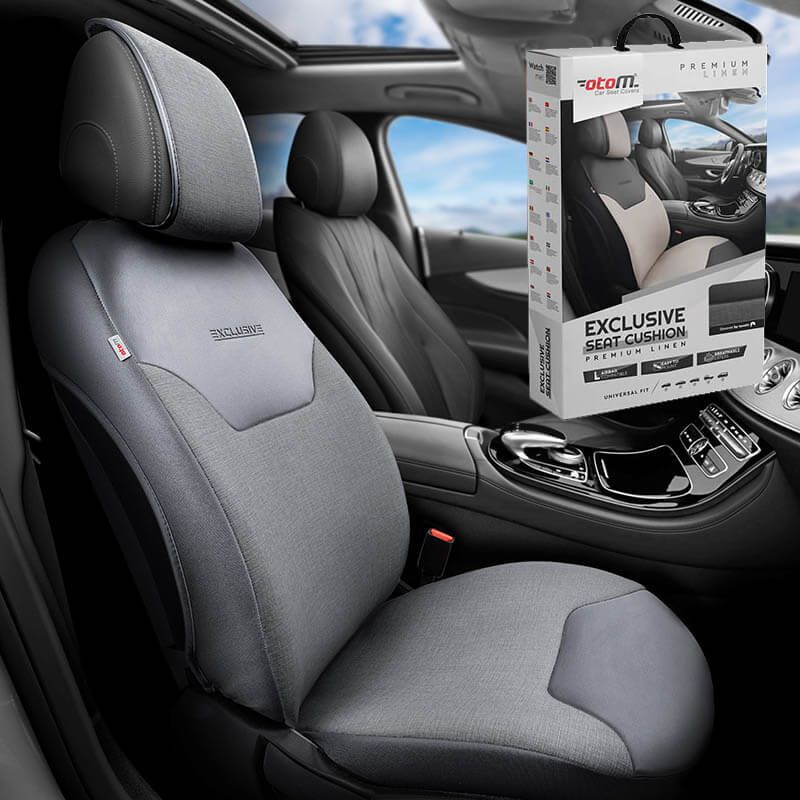 Ημικάλυμμα Αυτοκινήτου Otom "Exclusive" Από Λινό Ύφασμα Με Δερματίνη Μαύρο EXLN-101 1 Τεμάχιο