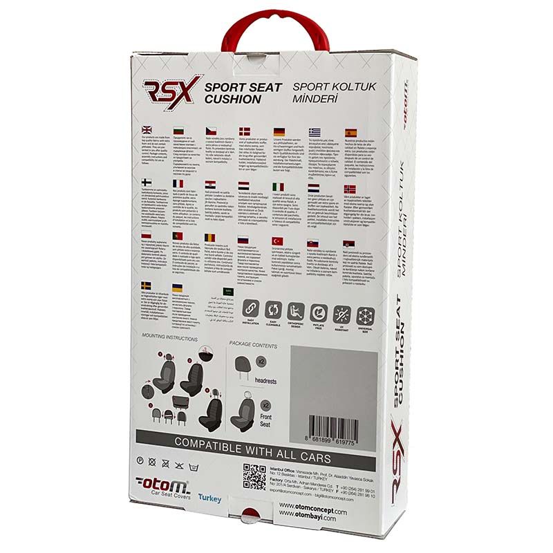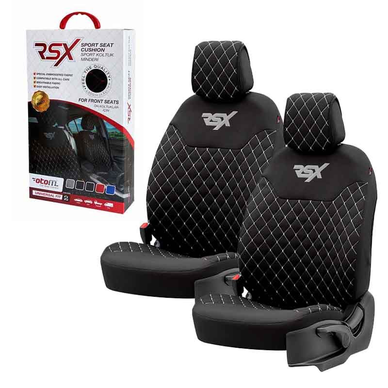 Ημικαλύμματα αυτοκινήτου για τα δύο μπροστινά καθίσματα RSX Sport από υψηλής ποιότητας ύφασμα κεντητό καπιτονέ.