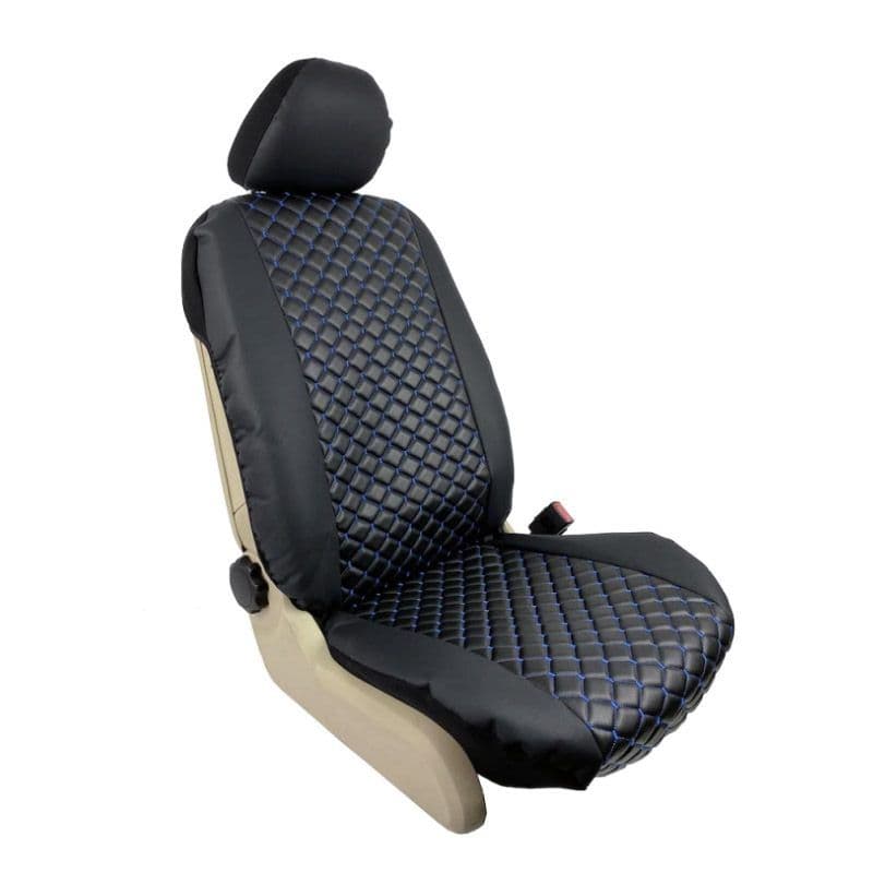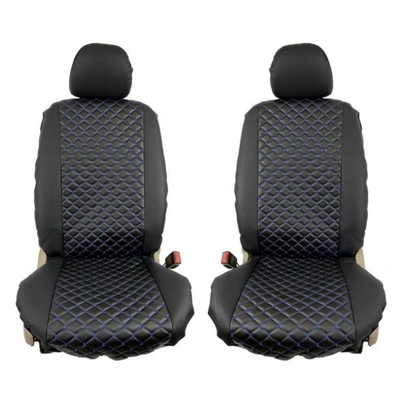 Ημικαλύμματα Μπροστινών Καθισμάτων Royal Δερματίνη Μαύρα Με Μπλε Ραφή 4 Τεμάχια