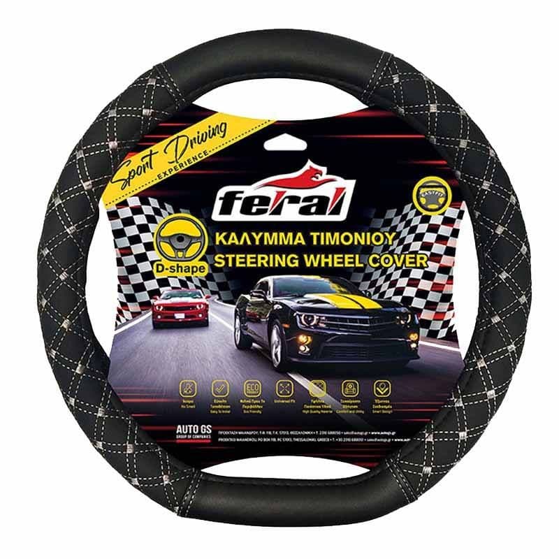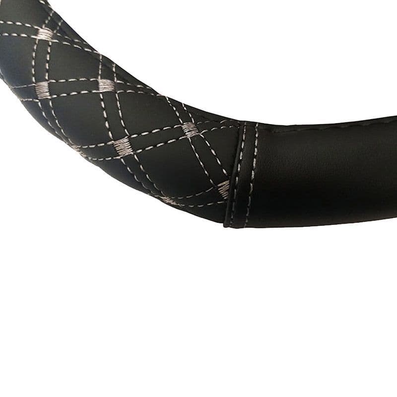 Κάλυμμα Τιμονιού Αυτοκινήτου Δερματίνη Elegant D Σχήμα Μαύρο Με Γκρι Ραφή Medium 38cm