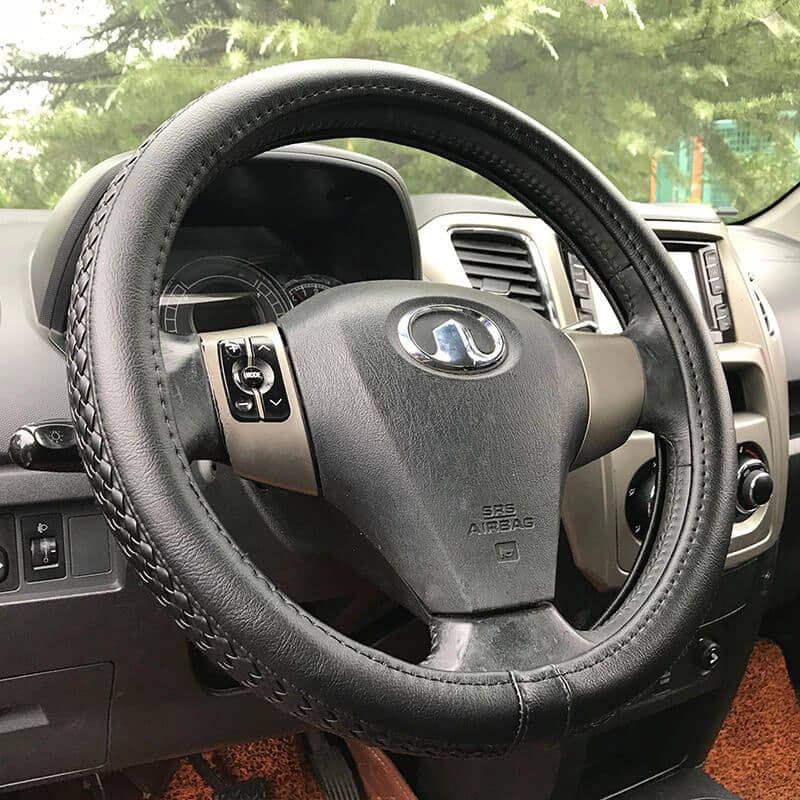 Κάλυμμα Τιμονιού Αυτοκινήτου Δερματίνη Soft Μαύρο Με Μαύρη Ραφή Medium 38cm
