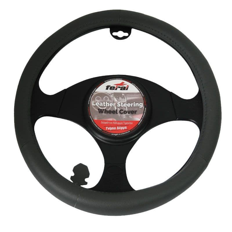 Κάλυμμα Τιμονιού Αυτοκινήτου Δερμάτινο Λείο Γκρι Medium 38cm