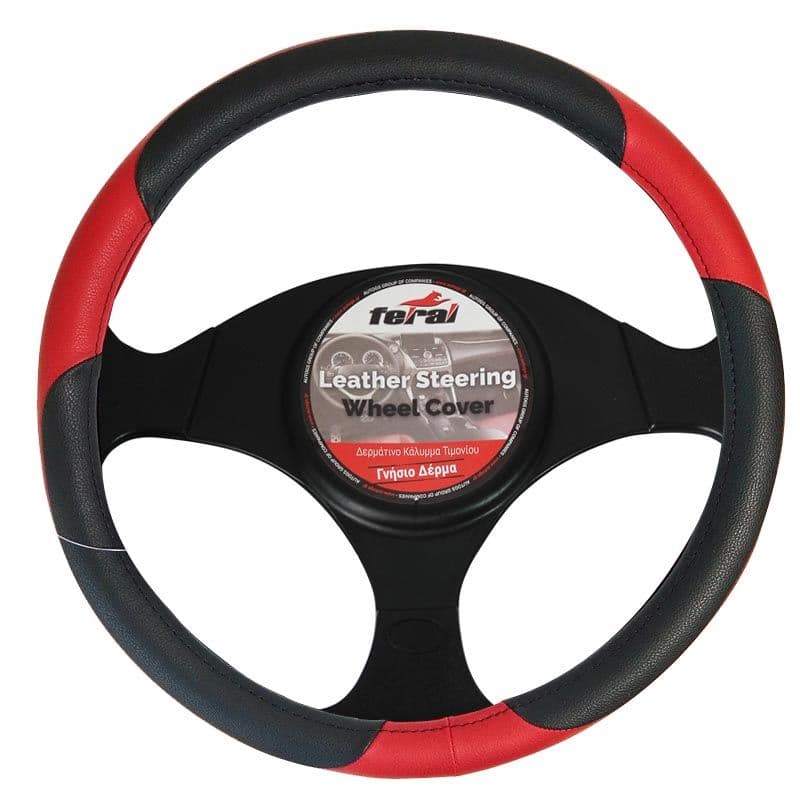 Κάλυμμα Τιμονιού Αυτοκινήτου Δερμάτινο Μαύρο/Κόκκινο Medium 38cm