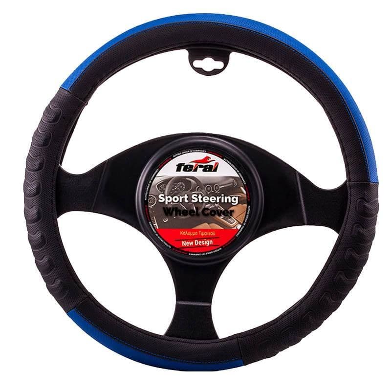 Κάλυμμα Τιμονιού Αυτοκινήτου PU Ανάγλυφο Μαύρο/Μπλε Medium 38cm