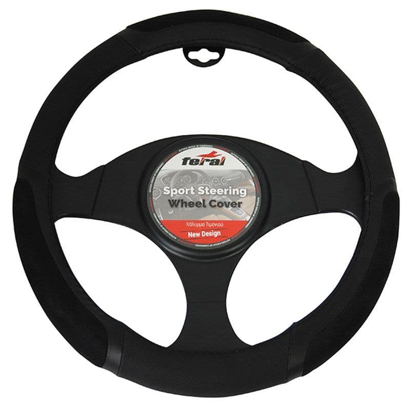 Κάλυμμα Τιμονιού Αυτοκινήτου PU Δίχρωμο Μαύρο Medium 38cm