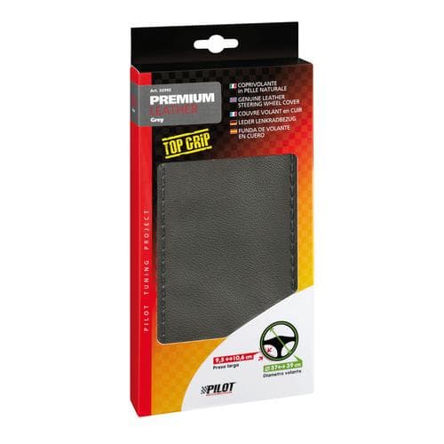 Κάλυμμα Τιμονιού Δερμάτινο Ραφτό PREMIUM (L) 37/39cm γκριΜαύρο γνήσιο Δέρμα, ταιριάζει απόλυτα στο τιμόνι. Άνετο κράτημα σε όλες τις εποχές. Το νάιλον νήμα και η βελόνα συμπεριλαμβάνονται. Κατάλληλο και για τιμόνια με αερόσακο. Για τιμόνια με Διάμετρο: 37 έως 39 cm Περιφέρεια λαβής τιμονιού: 9.05 - 10.06 cm