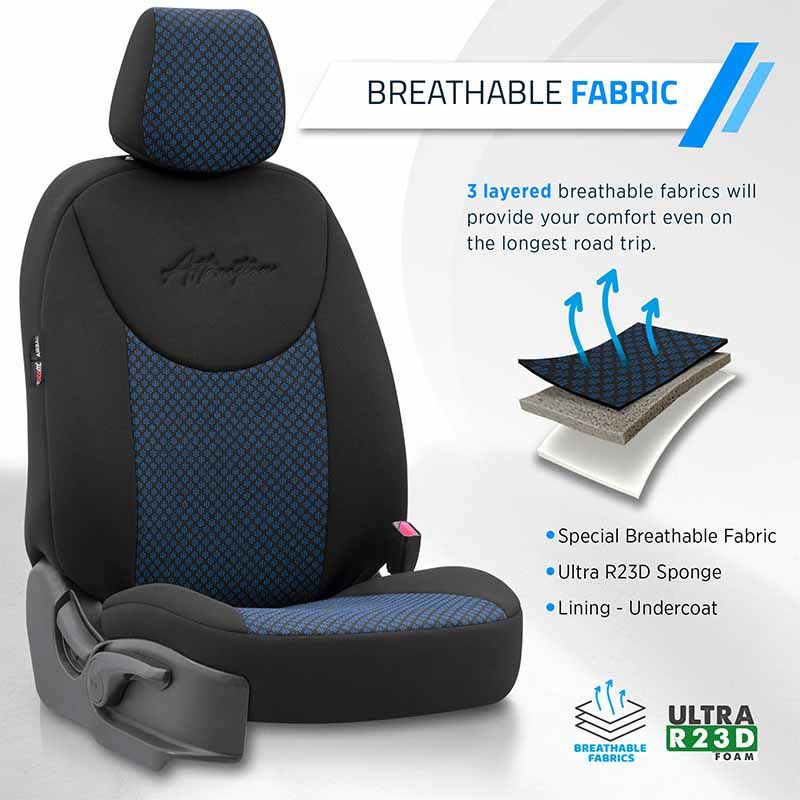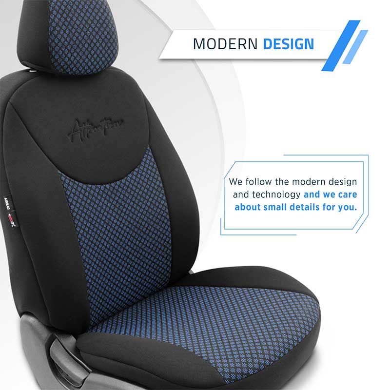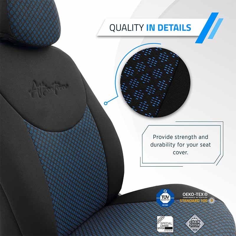 Καλύμματα Αυτοκινήτου Otom Attraction Design Universal Βαμβακερό Ύφασμα / Rachel Σετ Εμπρός / Πίσω 11 Τεμαχίων Μαύρο - Μπλε ATR-1303