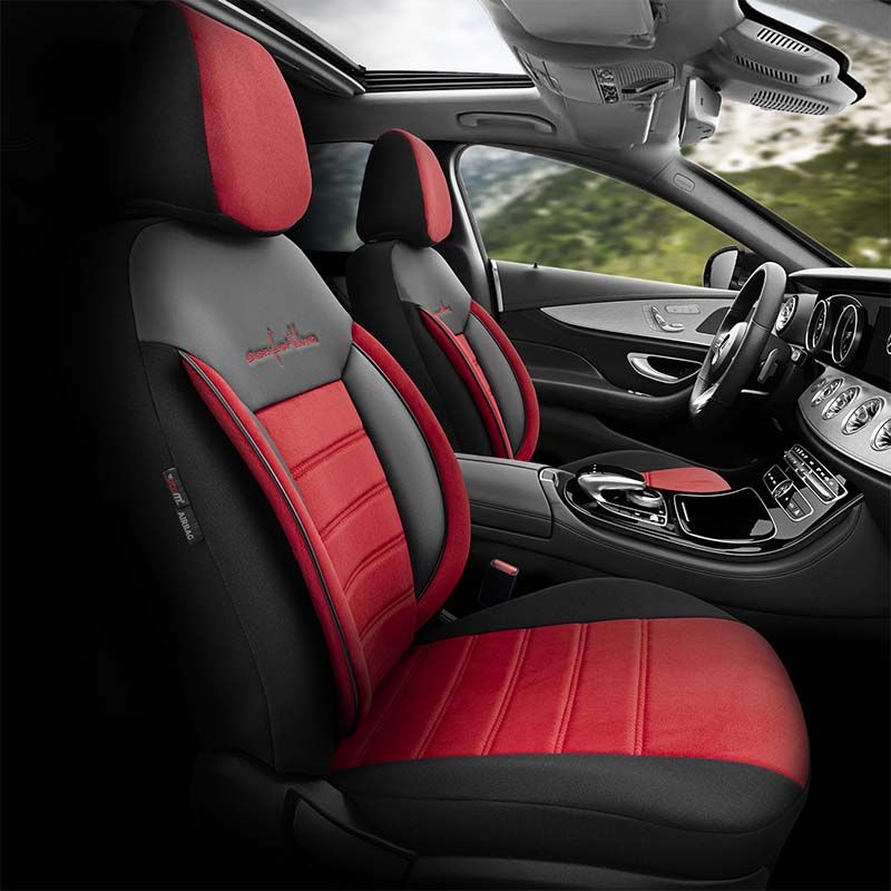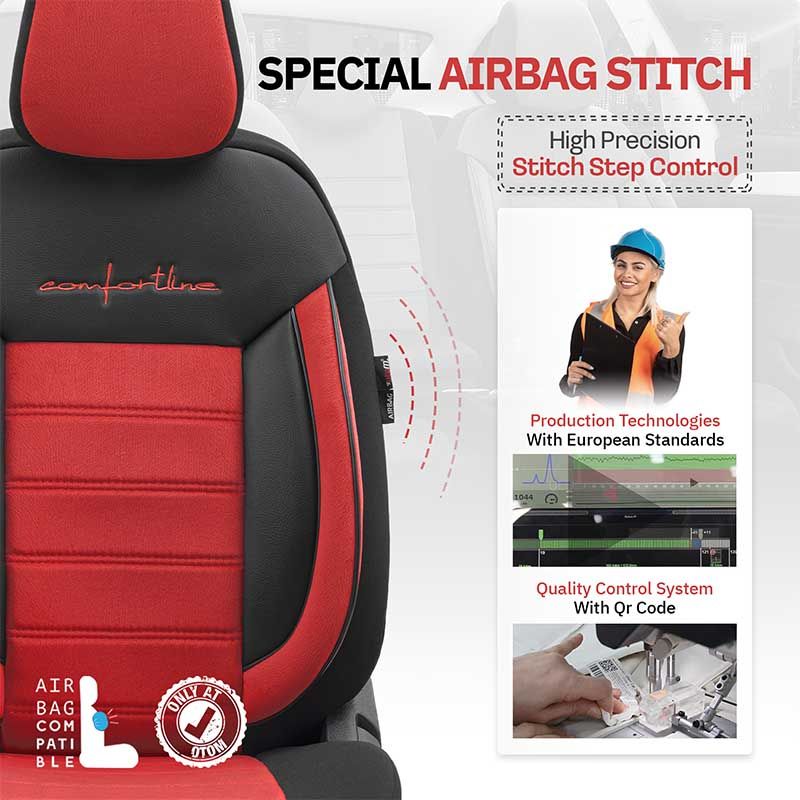 Καλύμματα Αυτοκινήτου Otom Comfortline Design Universal Sued / Rachel / Δερματίνη Σετ Εμπρός / Πίσω 11 Τεμαχίων Μαύρο - Κόκκινο CMF-207