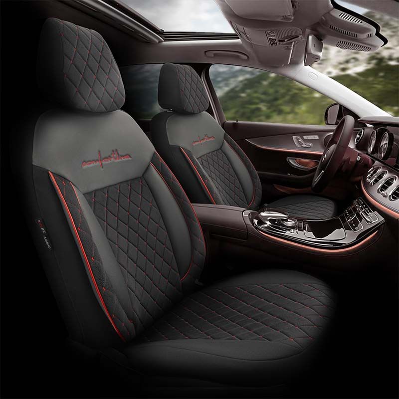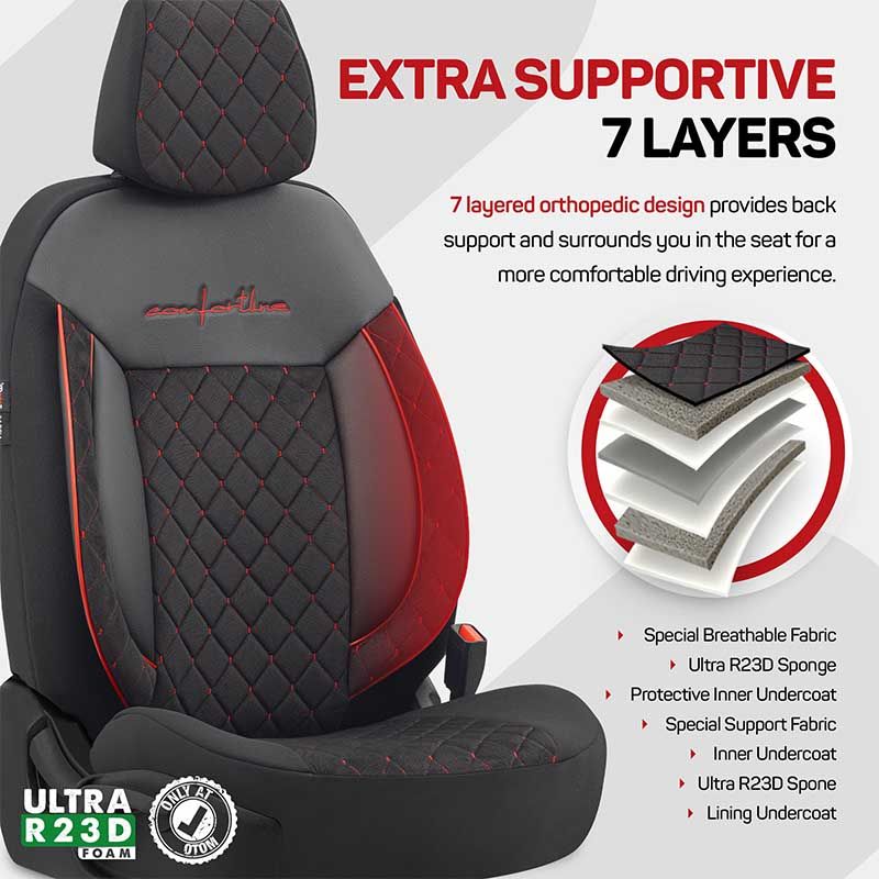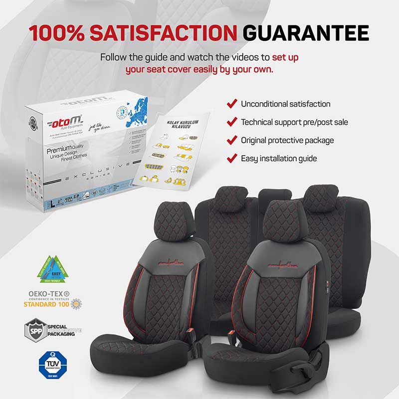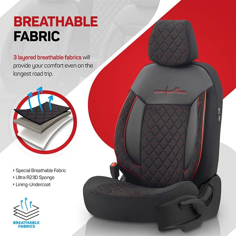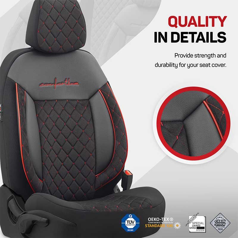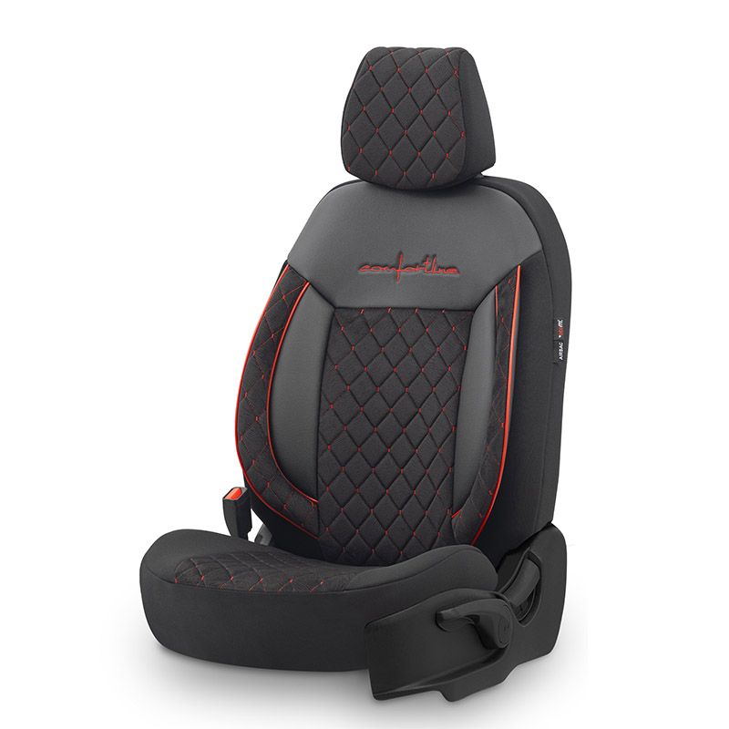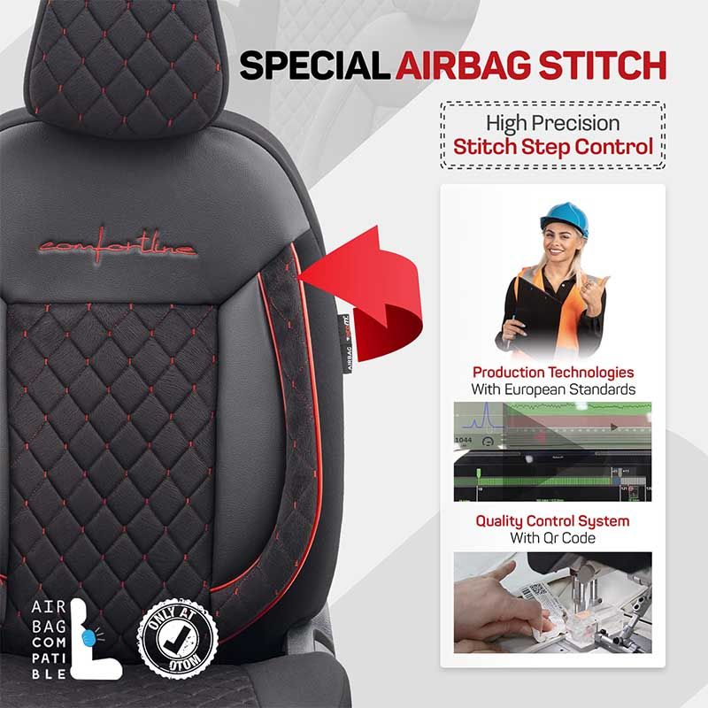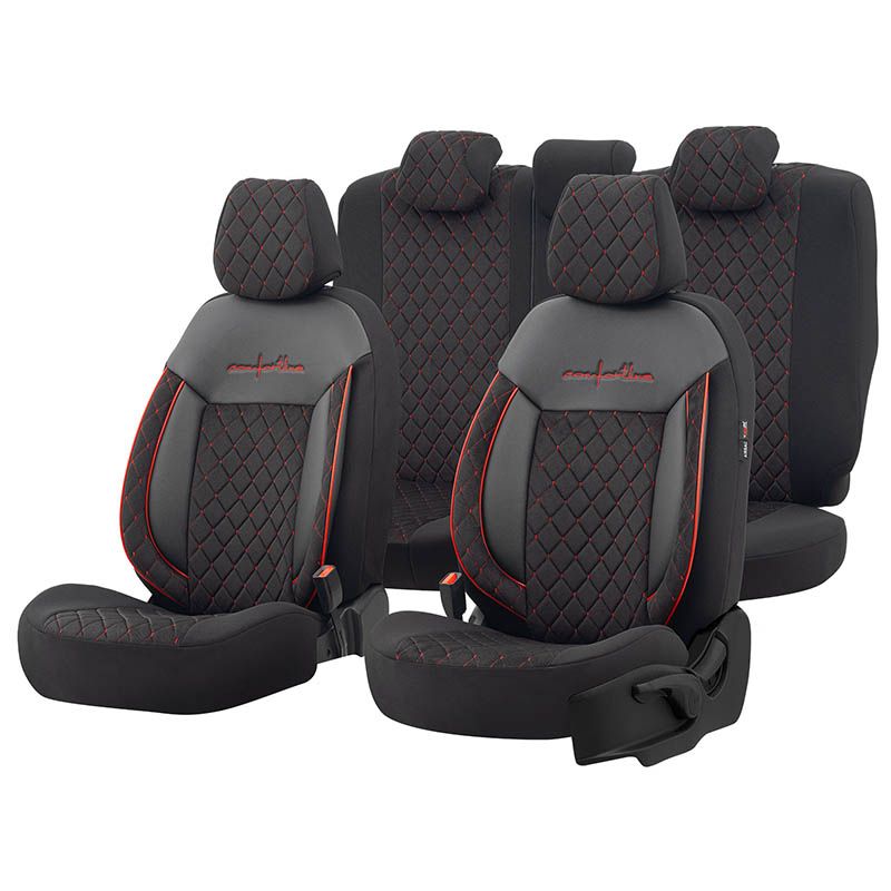 Καλύμματα Αυτοκινήτου Otom Comfortline VIP Design Universal Sued / Rachel / Δερματίνη Καπιτονέ Σετ Εμπρός / Πίσω 11 Τεμαχίων Μαύρο Με Κόκκινο Κέντημα CMV-231