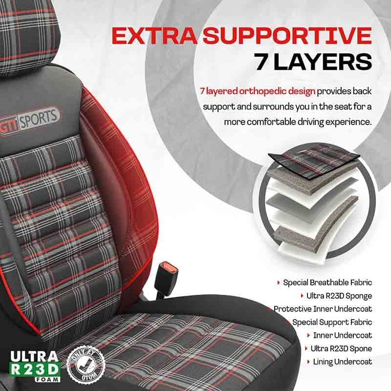 Extra Supportive 7 Layers : Ορθοπεδικός σχεδιασμός 7 στρώσεων στα πλαϊνά ώστε να παρέχεται στήριξη στην πλάτη και τη μέση . Προλαμβάνει τον πόνο και αυξάνει την οδηγική άνεση.