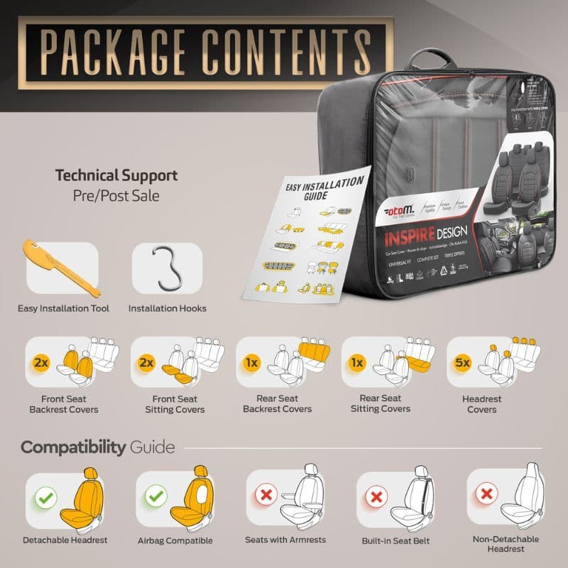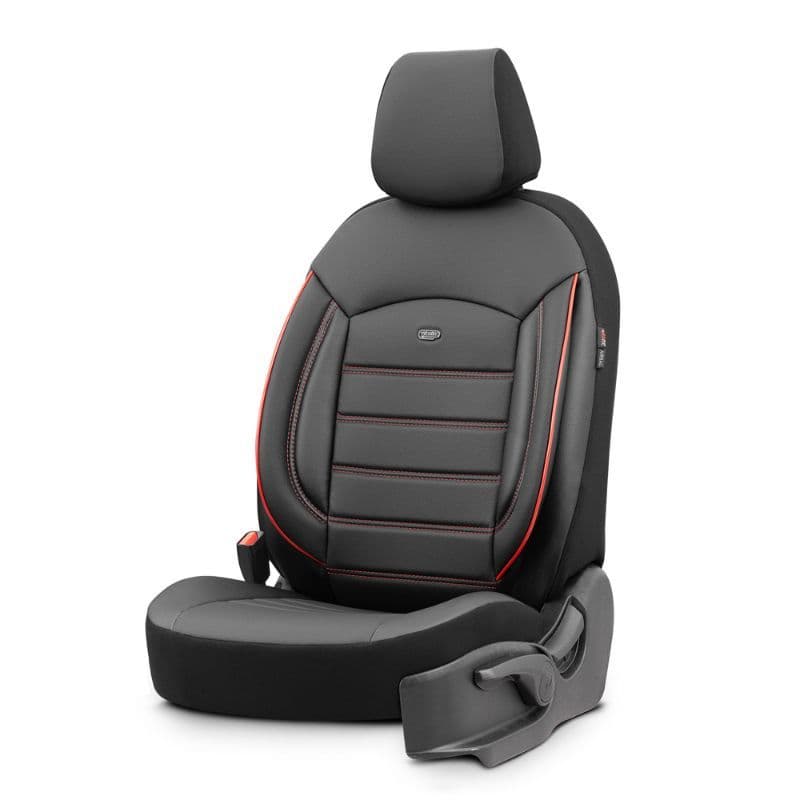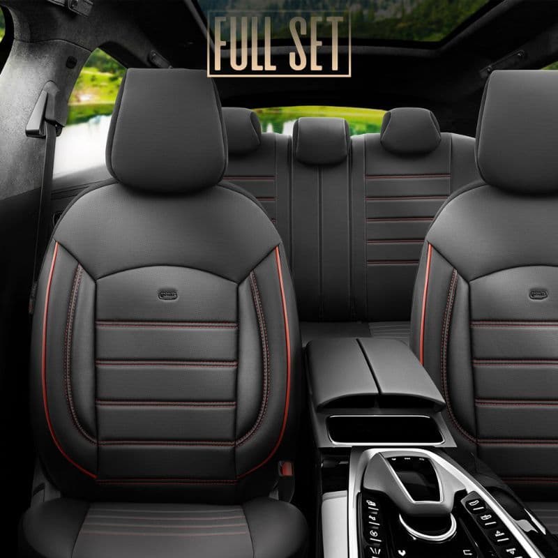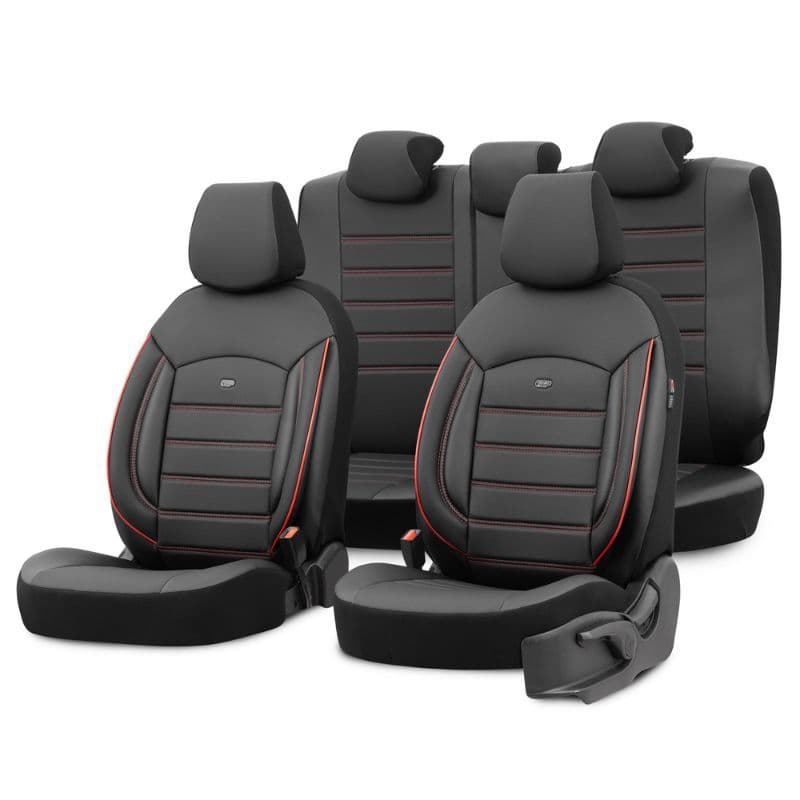 Καλύμματα Αυτοκινήτου Otom Inspire Design Universal Full Δερματίνη Σετ Εμπρός / Πίσω 11 Τεμαχίων Μαύρο Με Κόκκινη Ραφή INS-3503