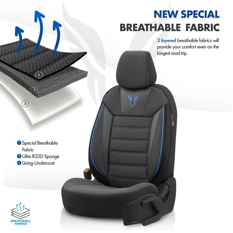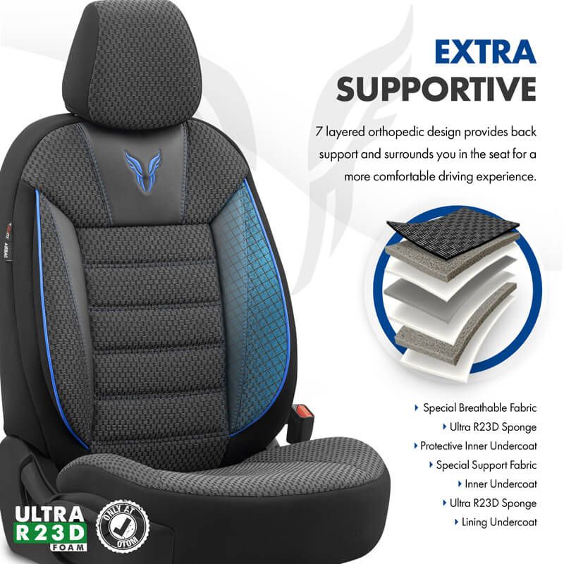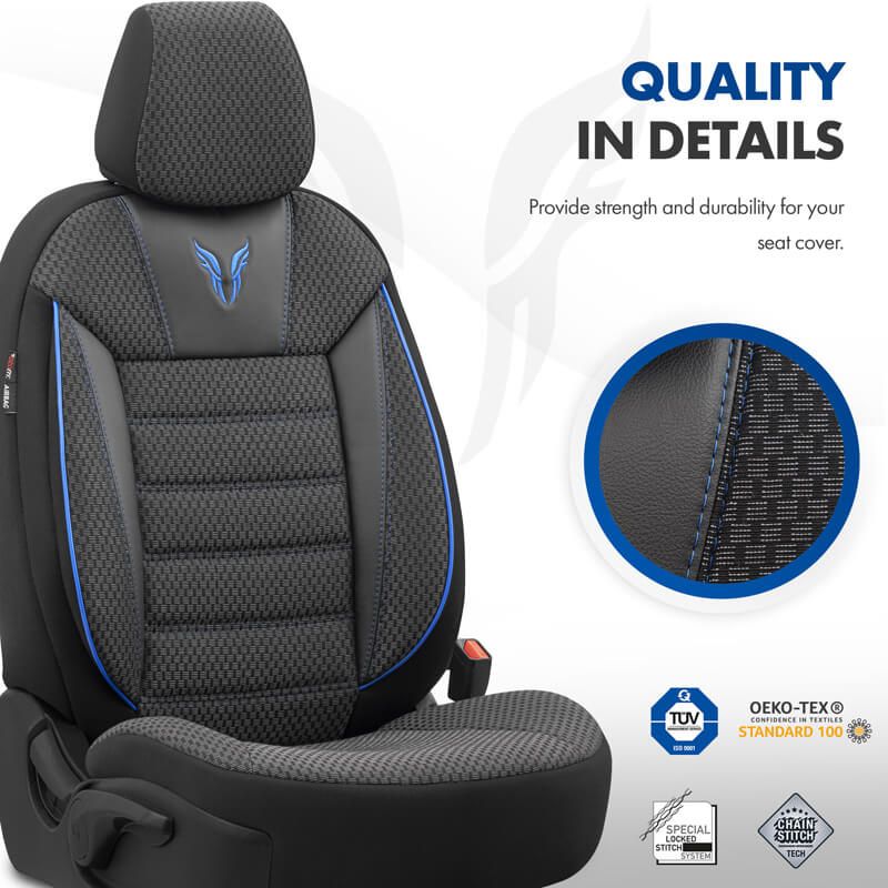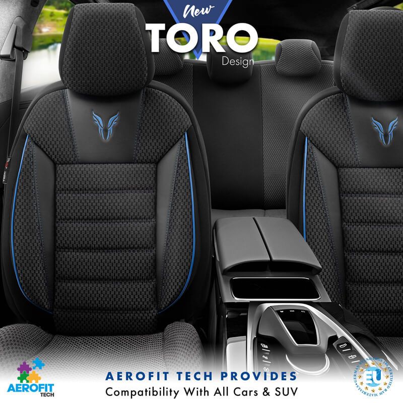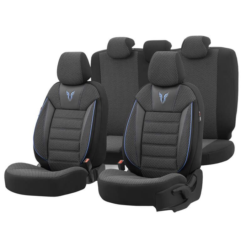 Καλύμματα Αυτοκινήτου Otom Toro Design Universal Βαμβακερό Ύφασμα / Δερματίνη Σετ Εμπρός / Πίσω 11 Τεμαχίων Μαύρο / Μπλε ΤRΟ-903