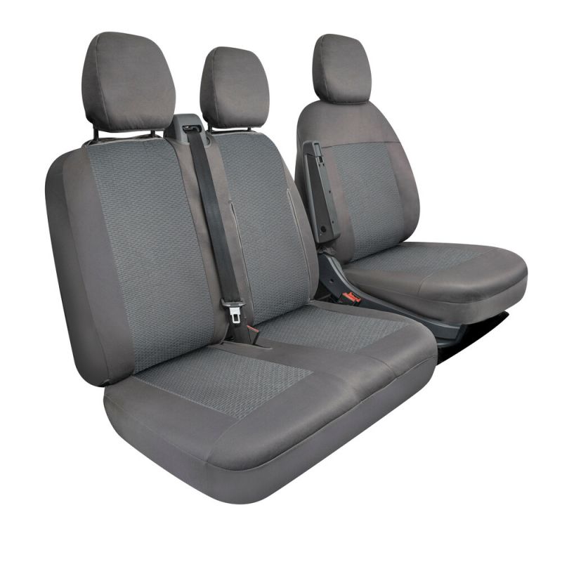 ΚΑΛΥΜΜΑΤΑ ΚΑΘΙΣΜΑΤΩΝ ΚΑΙ ΠΡΟΣΚΕΦΑΛΑ ΓΙΑ 3 ΣΕΙΡΕΣ ΘΕΣΕΩΝ ΣΕ ΓΚΡΙ ΣΚΟΥΡΟ ΧΡΩΜΑ SEDILI SET LARGE LAMPA - 1 ΤΕΜ. Κάλυμμα καθίσματος οδηγού: Velcro και στις δύο πλευρές. Φαρδύ άνω άνοιγμα για να επιτρέπει τη διέλευση μη αποσπώμενων ή ενσωματωμένων προσκέφαλων. Συμβατό με αερόσακους. Ελαστικό, επενδεδυμένο ύφασμα για μέγιστη άνεση και χρηστικότητα. Κάλυμμα συνοδηγών: Κεντρικό φερμουάρ. Άνοιγμα στο κάθισμα για να αγκιστρώνει στην κεντρική ζώνη ασφαλείας. Μεγάλο κλείσιμο με Velcro για να επιτρέπει τη διέλευση μη αποσπώμενων ή ενσωματωμένων προσκέφαλων. Ελαστικό, επενδεδυμένο ύφασμα για μέγιστη χρηστικότητα. Πλήρες σετ 3 καλυμμάτων προσκέφαλων. Σύνθεση: 100% πολυεστέρας. Άνω ύφασμα ζακάρ με επένδυση 3 mm. Υπόστρωμα: ελαστικός πολυεστέρας. Συμβατό με: Ford Transit Nissan NV400 Nissan Primastar Opel Movano III Opel Vivaro (17>) Renault Master III Συσκευασία 1 σετ
