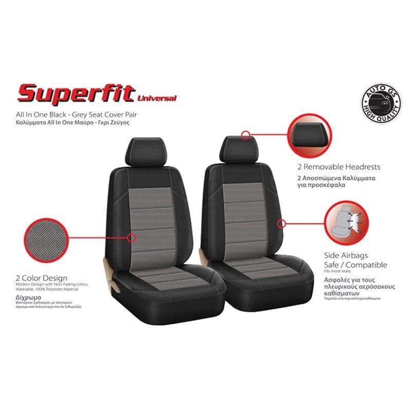 Καλύμματα Υφασμάτινα Super Fit All In One Μαύρο-Γκρι Ζευγάρι 4 Τεμάχια