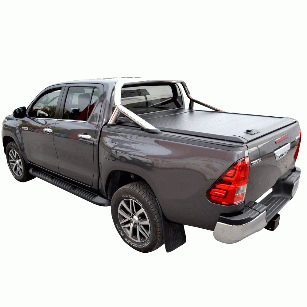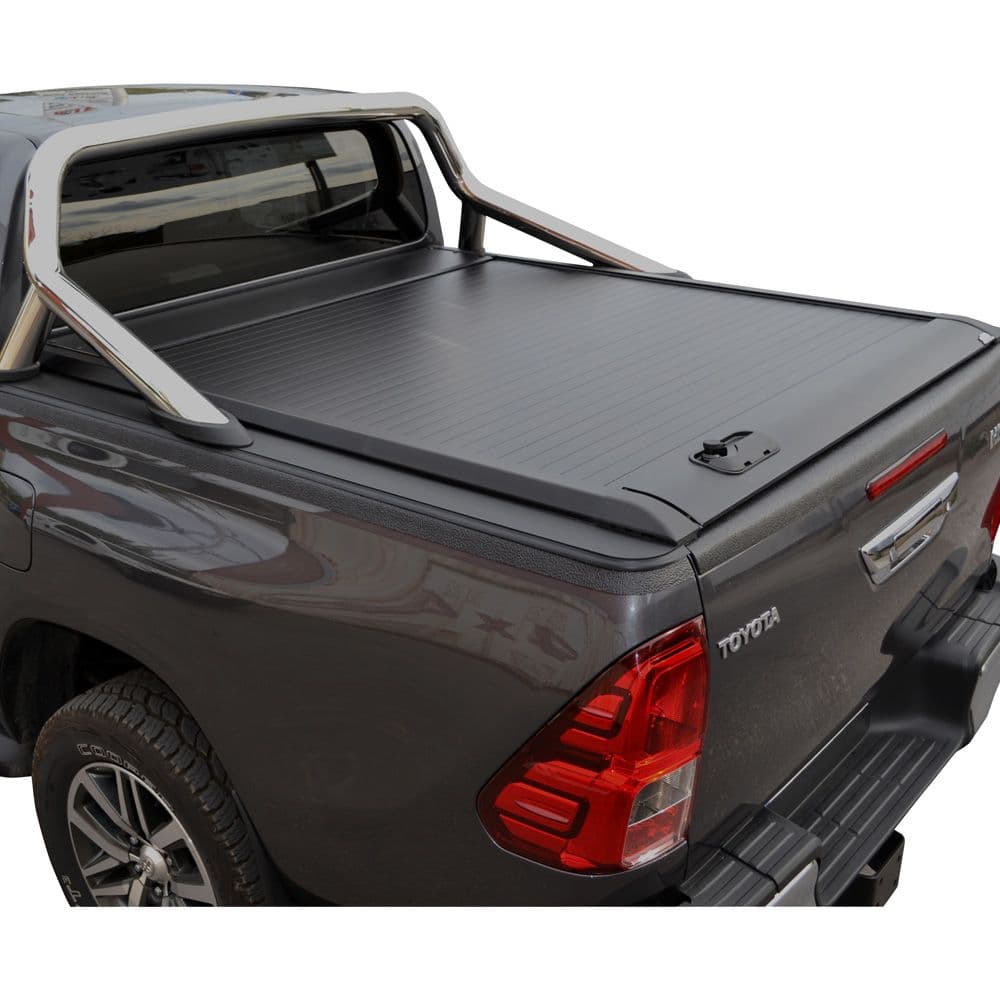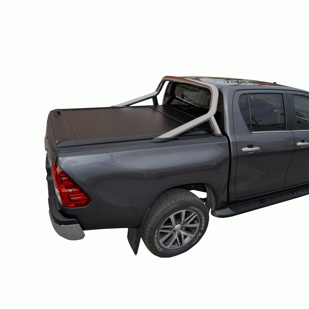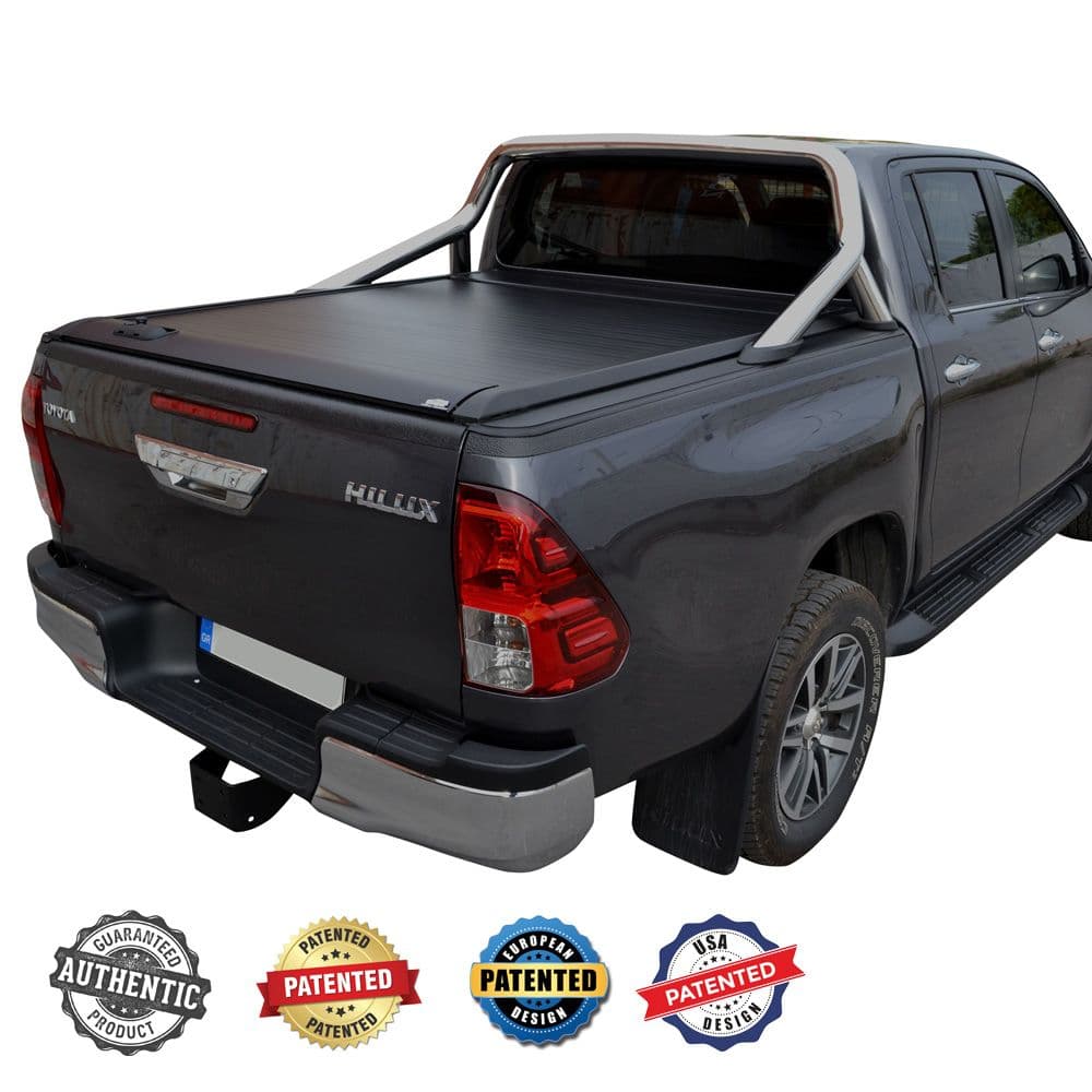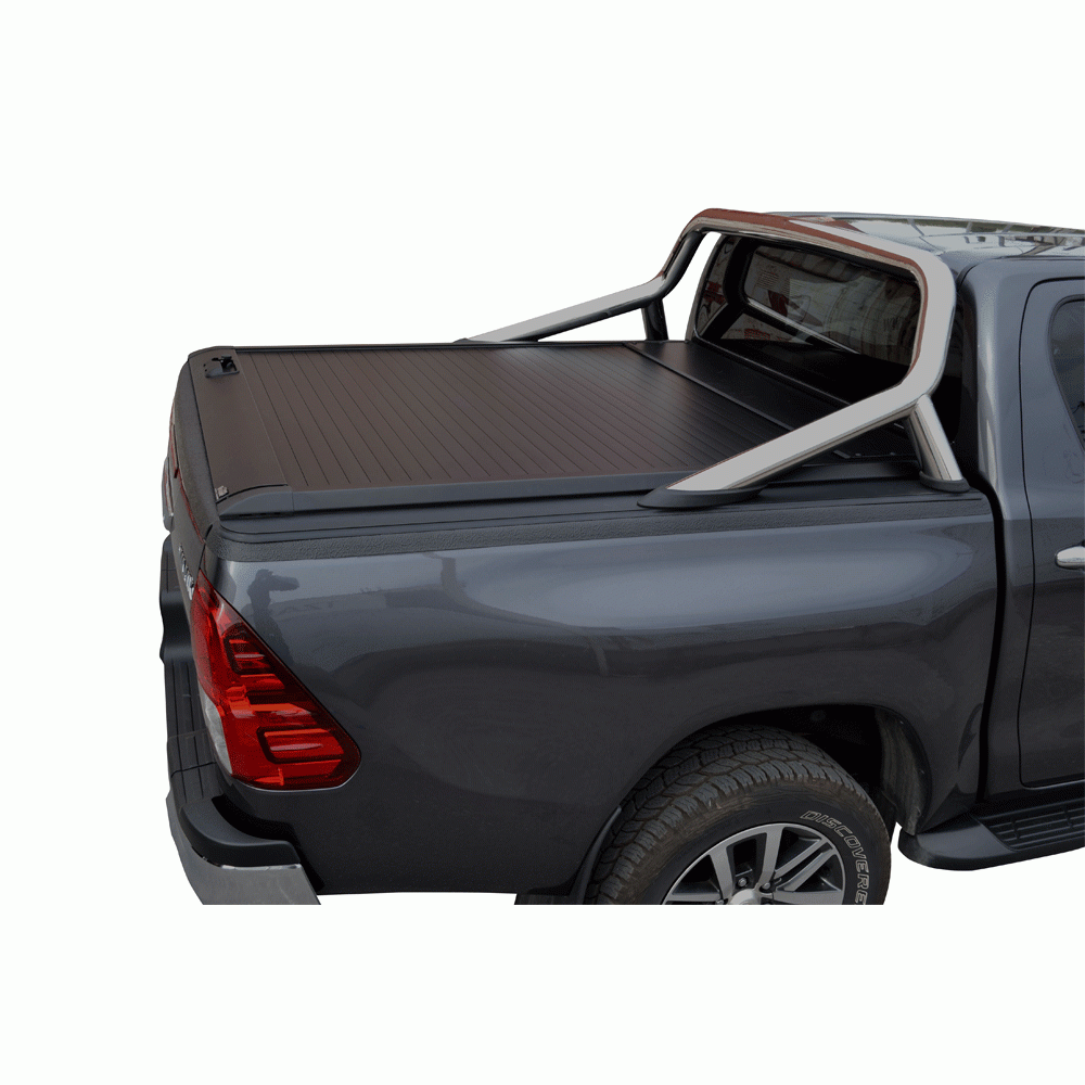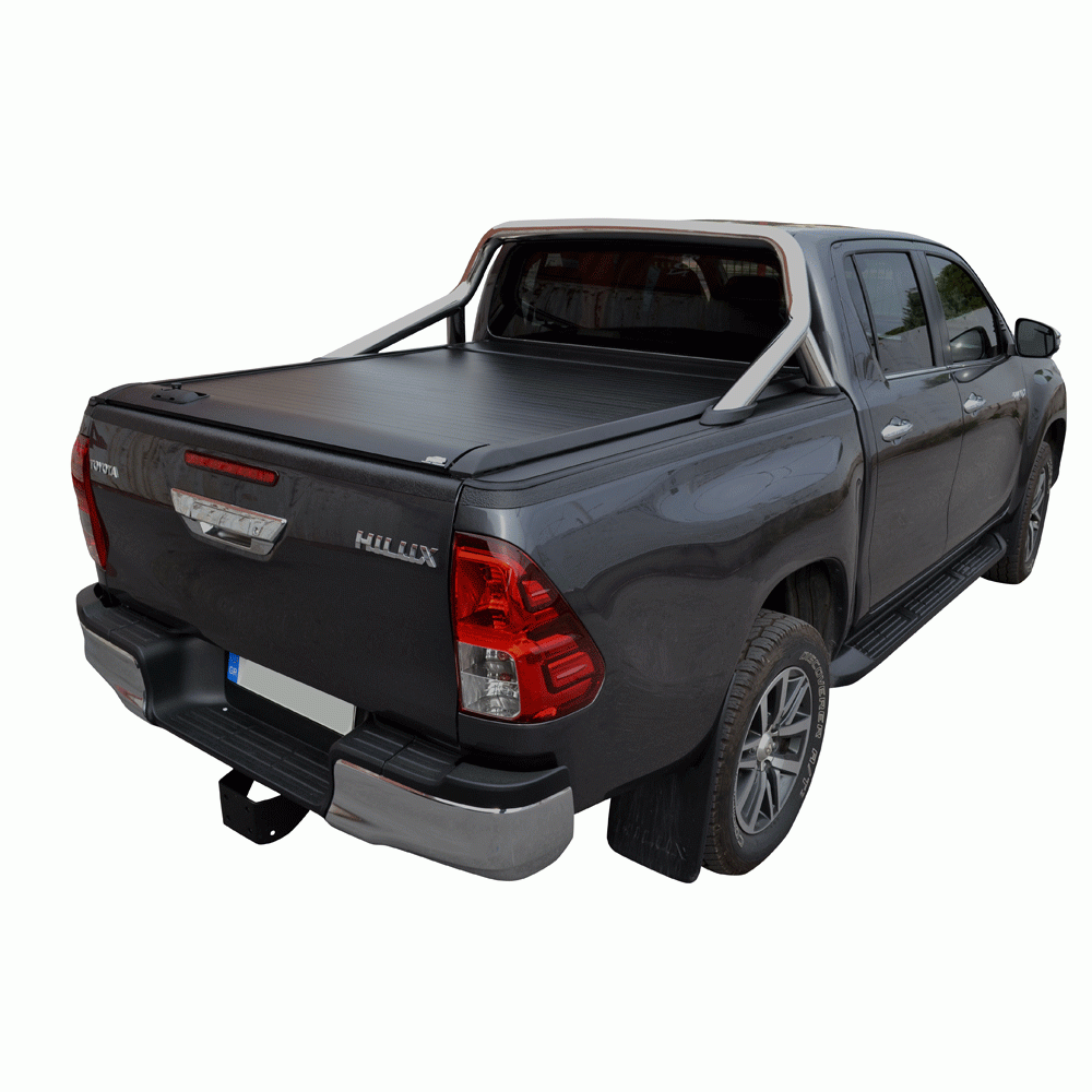 Ρολό καρότσας TEK 2 MAX ROLL SERIES®, συμβατό με Toyota εργοστασιακό roll-bar. To Roll-Bar τοποθετείται χωρίς τρύπημα στις ράγες του ρολού, με τους ειδικά σχεδιασμένους αντάπτορες (Special kits) οι οποίοι εγκαθίστανται στα αυλάκια (T-Slots) των ραγών του ρολού μας.