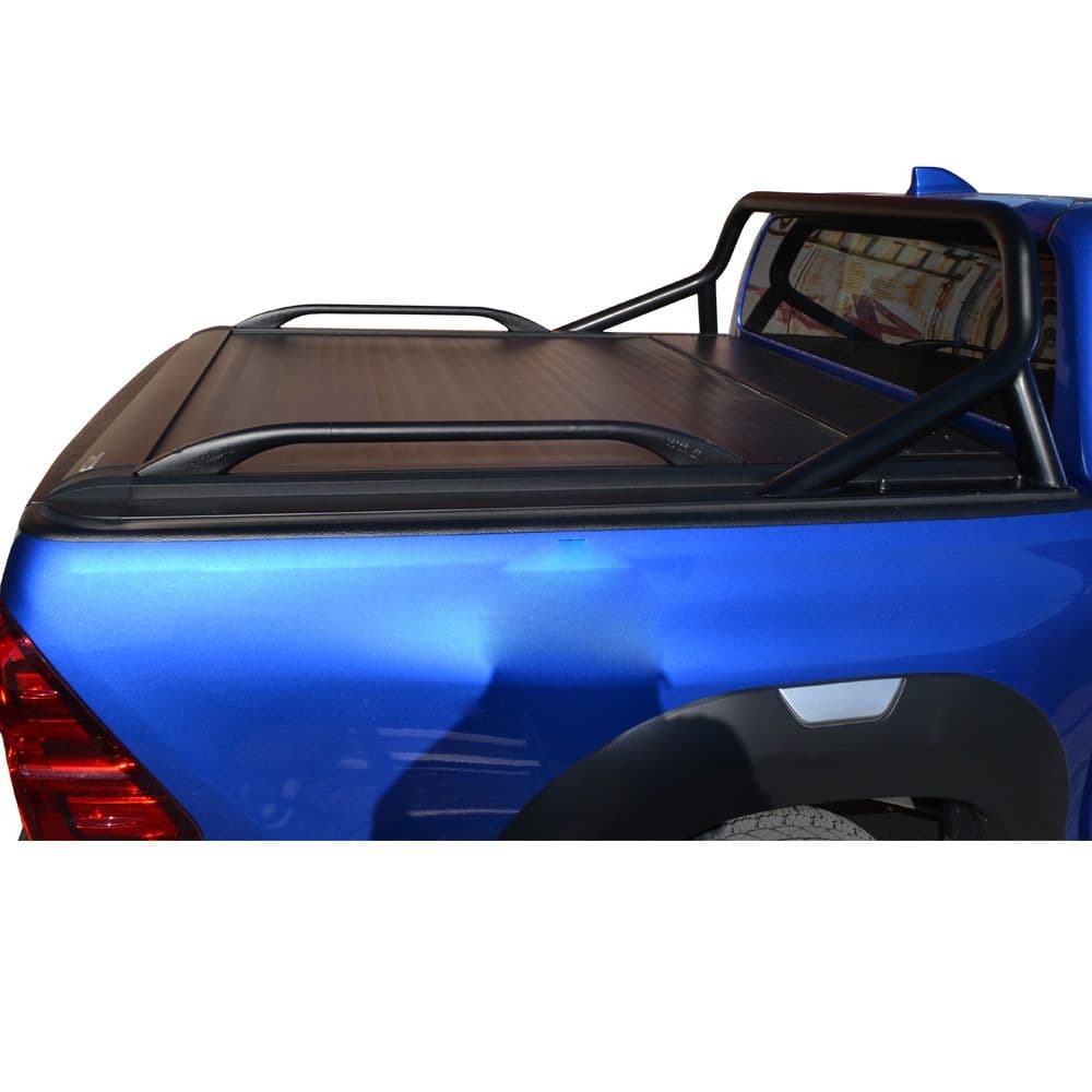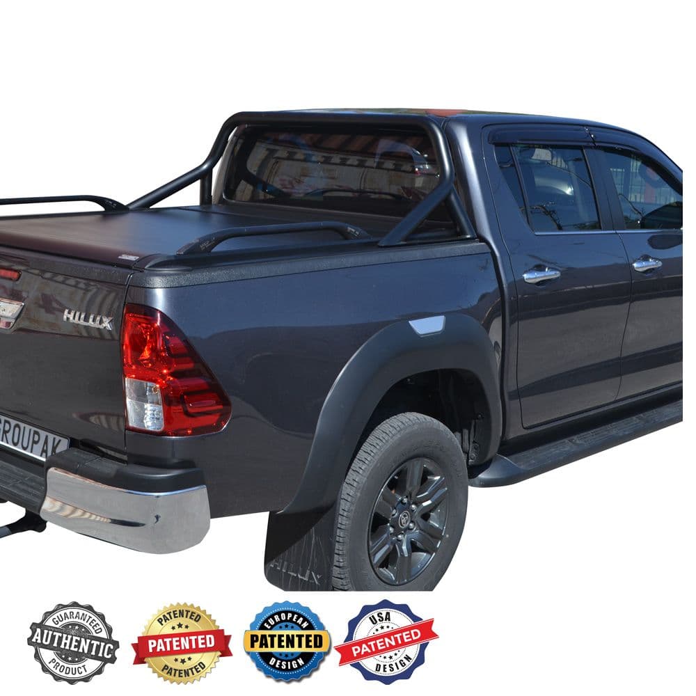 Ρολό καπάκι καρότσας TEK 2 MAX ROLL SERIES® (10 Πατέντες), συνδυασμένο με το σιδερένιο εργοστασιακού τύπου roll-bar και με κουπαστές.