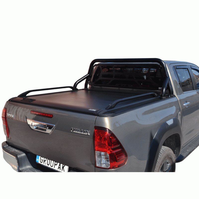 ΚΑΠΑΚΙ ΚΑΡΟΤΣΑΣ ΡΟΛΟ ΑΛΟΥΜΙΝΙΟΥ ΜΕ ΒΑΡΕΟΣ ΤΥΠΟΥ BLACK-INOX ROLL-BAR, ΑΨΙΔΑ ΤΖΑΜΙΟΥ ΚΑΙ ΚΟΥΠΑΣΤΕΣ TEK 2 MAX 9080 ROLL+RB 405BL-INOX+KOUP 115BL 2016+TOYOTA HILUX REVO 2016+ & HILUX 2021+