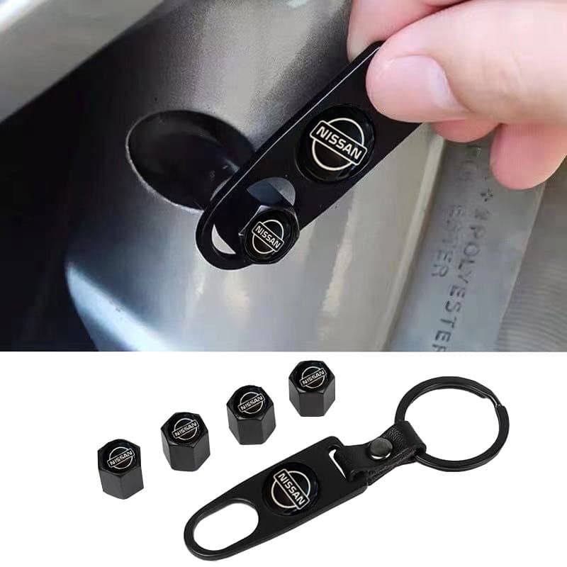 Καπάκια Βαλβίδων Αυτοκινήτου Με Μπρελόκ Nissan Μαύρο 5 Τεμάχια