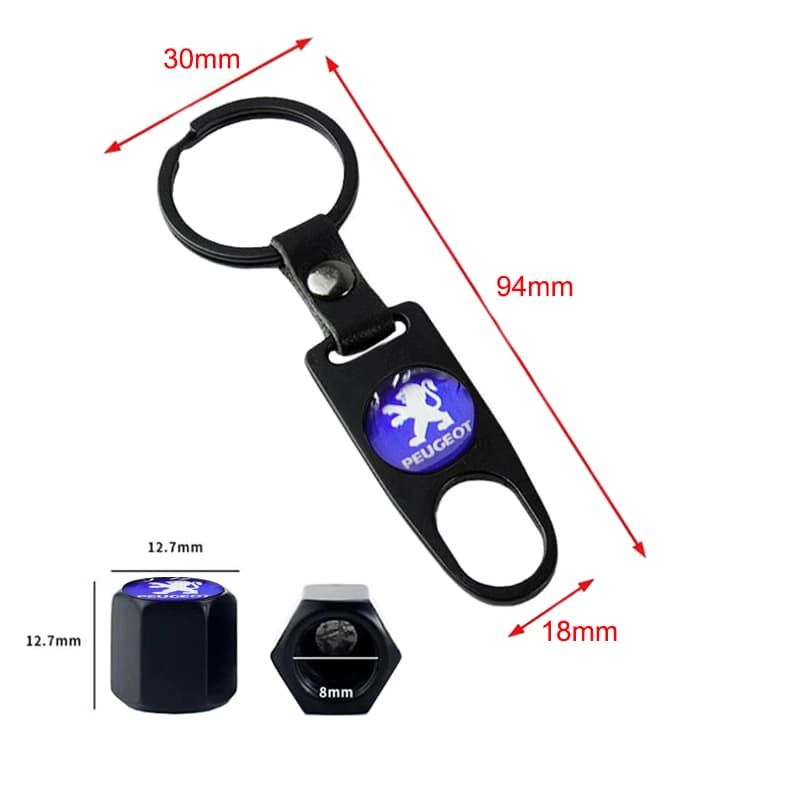 Καπάκια Βαλβίδων Αυτοκινήτου Με Μπρελόκ Peugeot Μαύρο 5 Τεμάχια