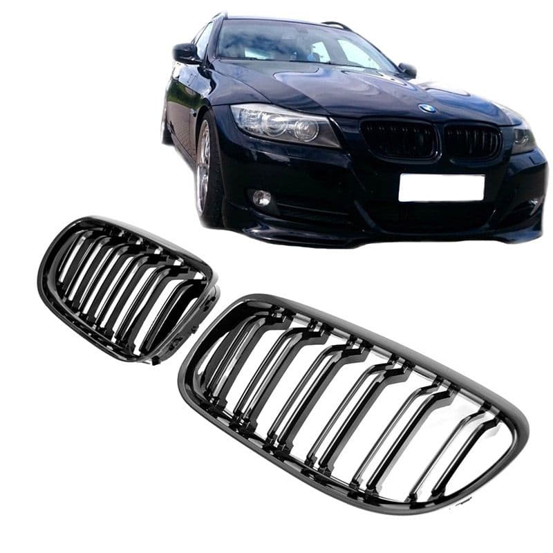 Καρδιές Μάσκας Για Bmw 3 E90 /E91 08-11 M4 Look Με Διπλή Γρίλια Μαύρο Γυαλιστερό 2 Τεμάχια