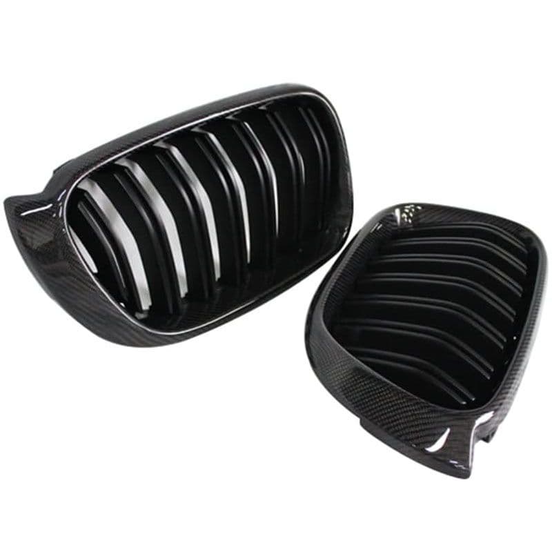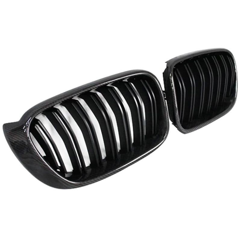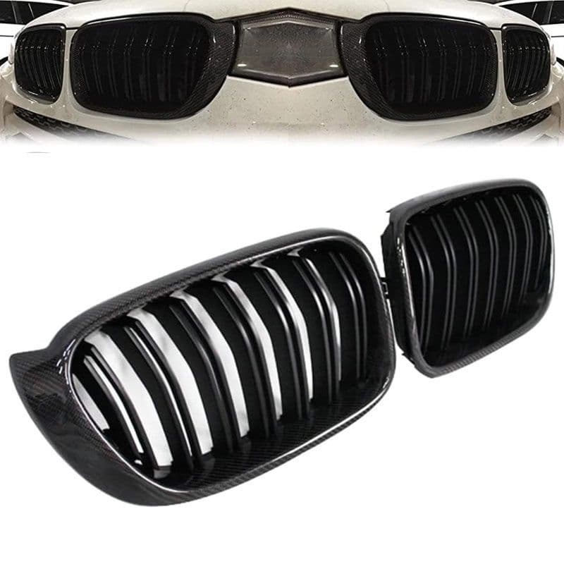 Καρδιές Μάσκας Για Bmw X3 F25 LCI 14-17 / X4 F26 14-17 M4 Look Με Διπλή Γρίλια Μαύρο Γυαλιστερό Με 7 Γρίλιες Και Πλαίσιο Carbon 2 Τεμάχια
