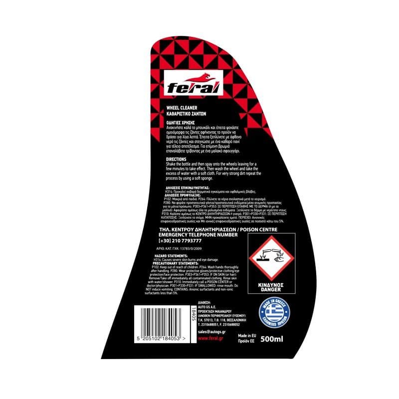 Το καθαριστικό ζαντών Feral είναι ένα προϊόν με μοναδική σύνθεση που δρα αποτελεσματικά πάνω στην ζάντα απομακρύνοντας λάσπες, λάδια, και σκόνη.