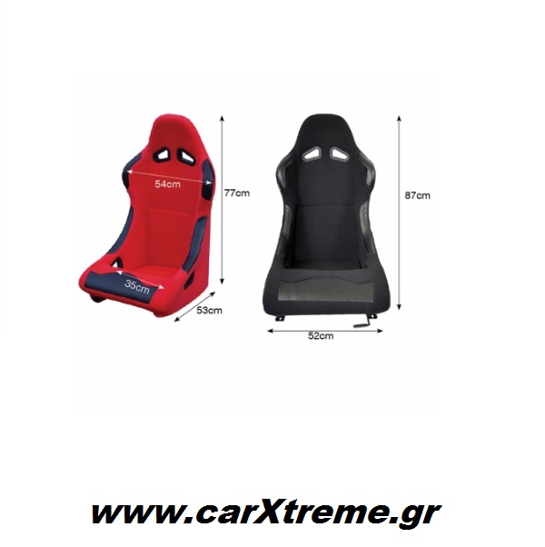 Το κάθισμα αυτοκινήτου σε bucket κουβάς είναι υφασμάτινο, χρώμα μαύρο-μπλέ και διατίθεται από το κατάστημα carXtreme.