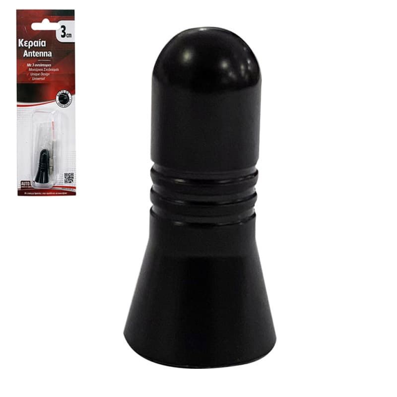 Κεραία Οροφής Αυτοκινήτου Universal Αλουμινίου Πομπέ Μικρή 3cm Μαύρη Με 3 Αντάπτορες