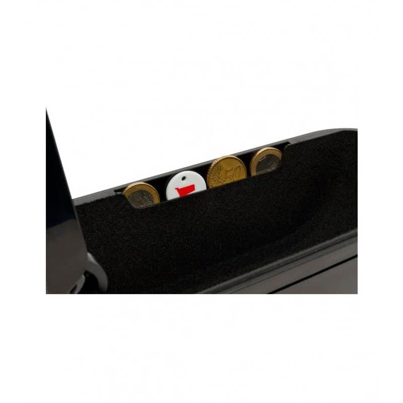 Στο εσωτερικό υπάρχει ένας χώρος αποθήκευσης υψηλής αισθητικής, με επένδυση και βάση για στυλό και κερματοδέκτη, ιδανική λύση για την αποθήκευση μικροαντικειμένων.