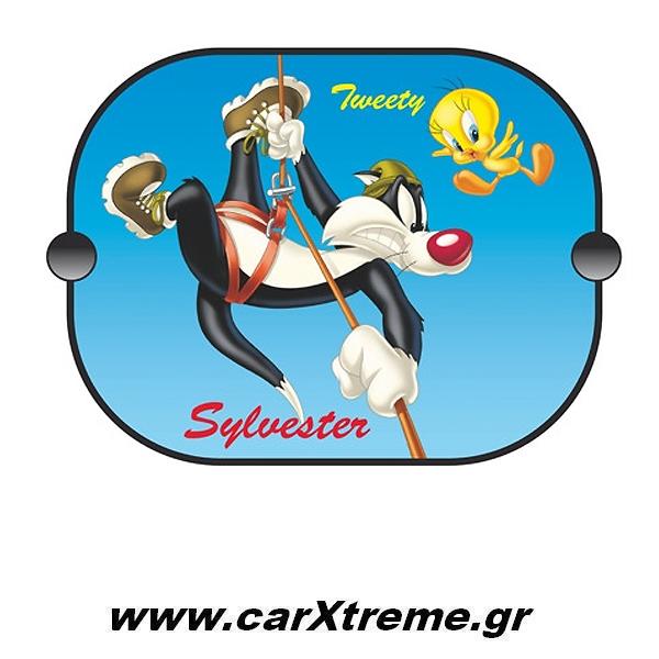 Τοποθετείστε την ηλιοπροστασία αυτοκινήτου με καρτούν Sylvester και