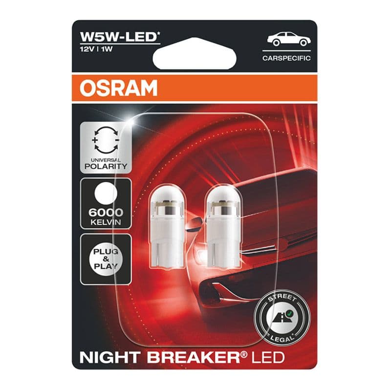 Λάμπες Led T10 12Volt 1Watt Night Breaker 6000k Osram 2825DWΝΒC-02Β 2 Τεμάχια